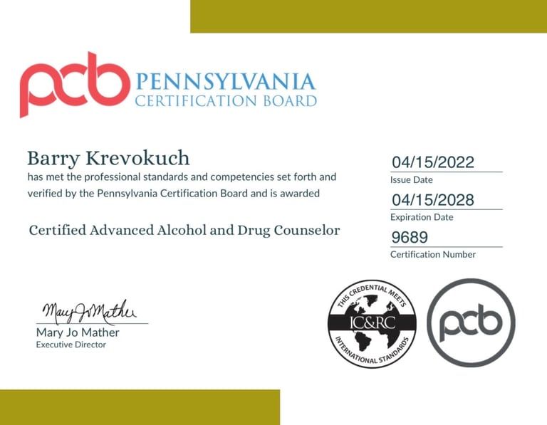 If you have been referred by a Substance Abuse Professional (SAP) for drug and alcohol education, I offer individualized education services designed to help you meet referral requirements in a supportive, professional, and nonjudgmental setting. As a Certified Advanced Alcohol and Drug Counselor (CAADC) in Pennsylvania, I provide education focused on increasing understanding of substance use, its impact on health and functioning, relapse prevention, and recovery-oriented decision-making. These services are educational in nature and may be appropriate for individuals needing to complete SAP-recommended education. If you are seeking this service or have questions about whether it is a good fit for your needs, please contact me for more information.